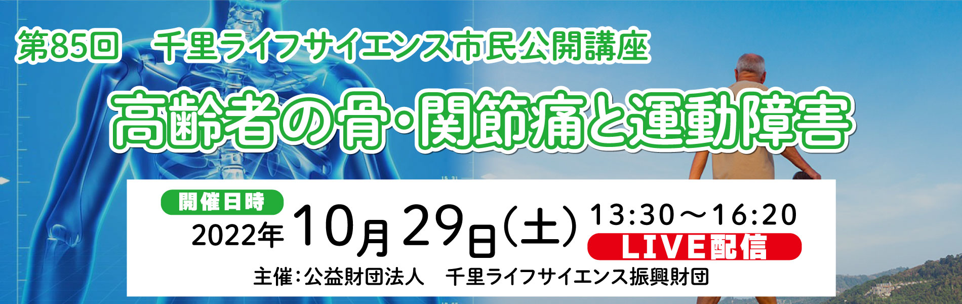 第85回千里ライフサイエンス市民公開講座 「高齢者の骨・関節痛と運動障害」のライブ配信は終了いたしました。